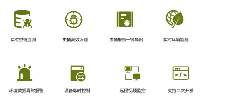 农业四情测报平台是集虫情、气象、墒情监测为一体在线监控平台。虫情监测具有Al害虫自动识别、远程实时查看虫情、虫情在线分析、害虫种类自动识别、区域虫情统计、虫情变化趋势分析、设备监测等功能。气象监测具有远程实时查看气象、在线分析气象历史数据的功能。墒情监测具有远程获取土壤墒情(如土壤温湿度、水分、PH)数据、在线分析土壤墒情历史数据的功能。