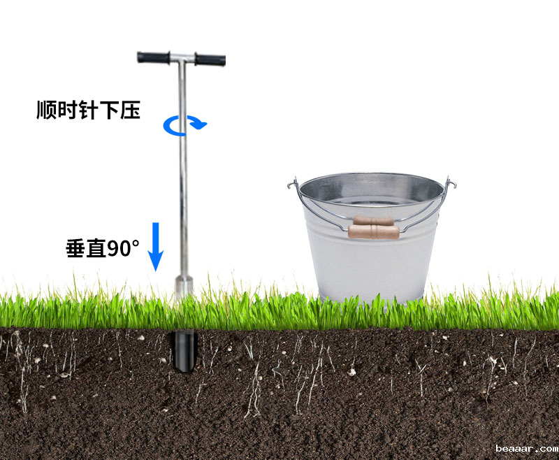 1. 取土钻钻头、手柄、支杆,完成后将取土钻竖直于地面,双手紧握手柄顺时针下压慢速转动。(注意:不要太用力,务必慢速多转几圈,防止钻头跑偏至孔洞打歪)